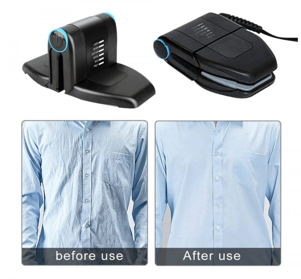 Lightweight, weighing just 0.81 pounds, it has a flat design that folds about the size of a palm. By spreading out the sides of the iron, you can use it to iron a wide range of clothing like a traditional iron. For small areas such as collars, pockets or trouser legs, simply clip the sides of the iron.
